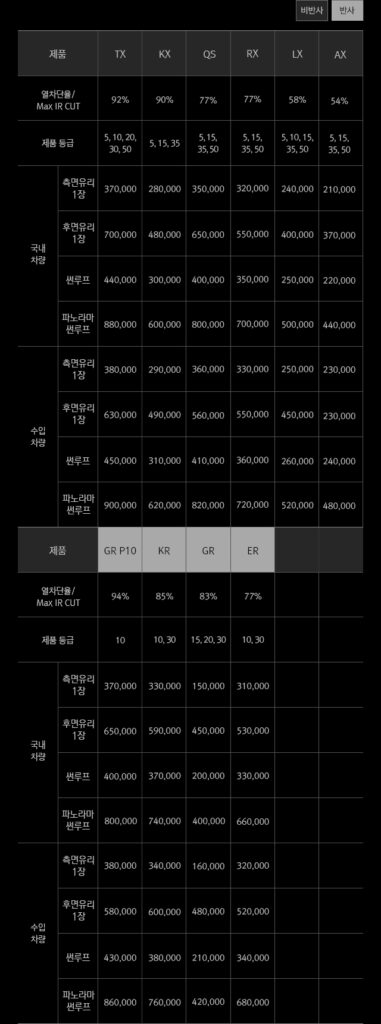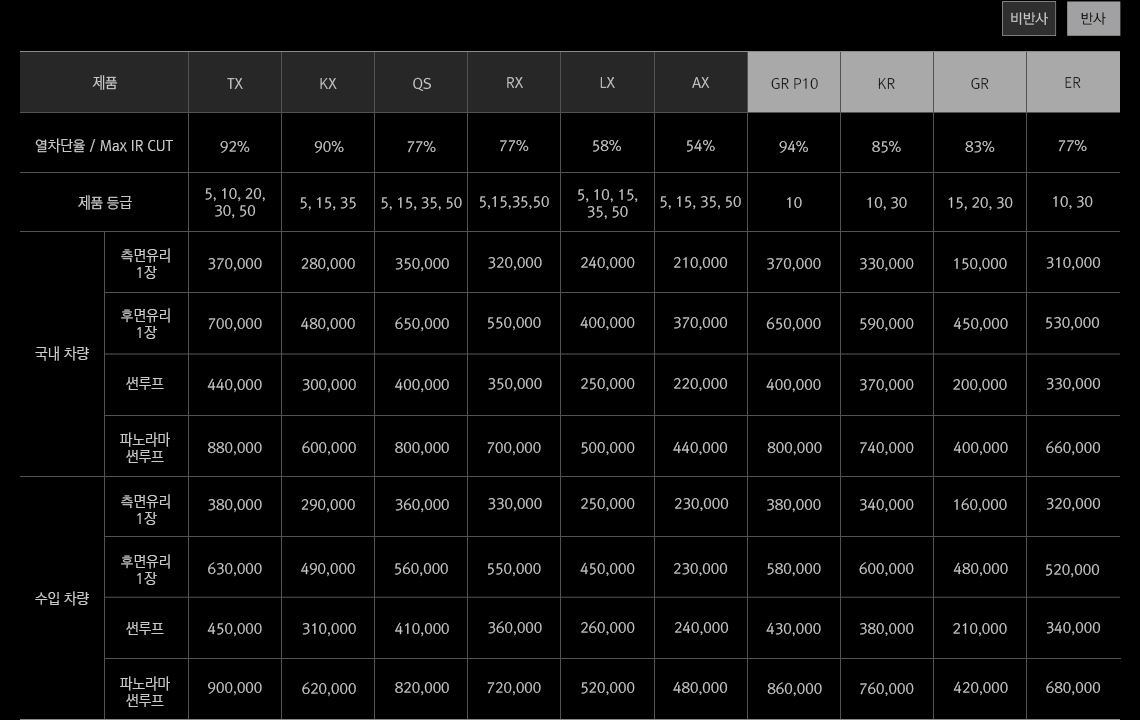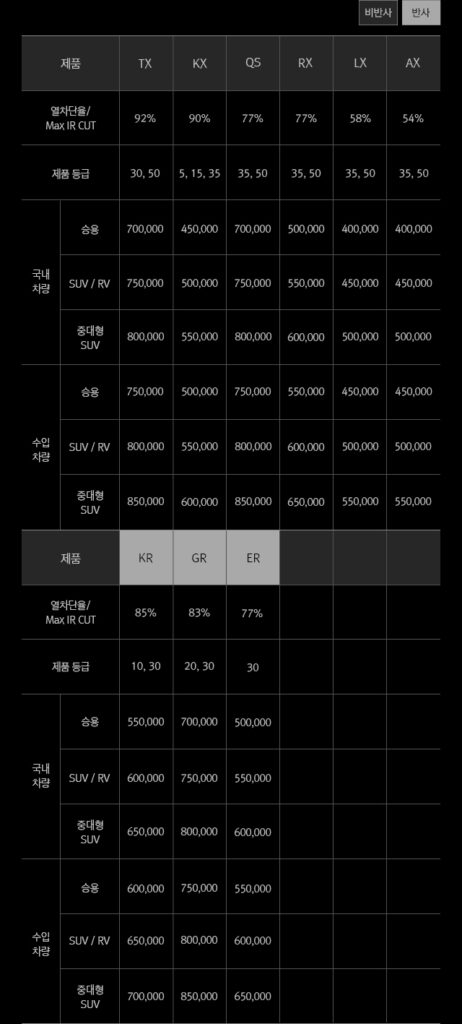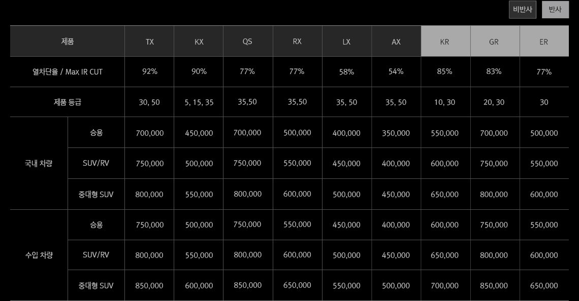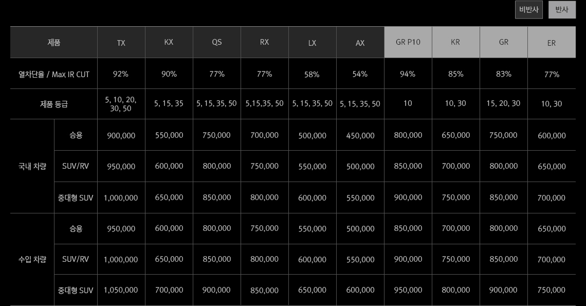 * 열차단성능을 향상시키기 위한 높은 IR수치의 제품은 적외선방식의 외부기기에 오작동을 발생할 수 있습니다.