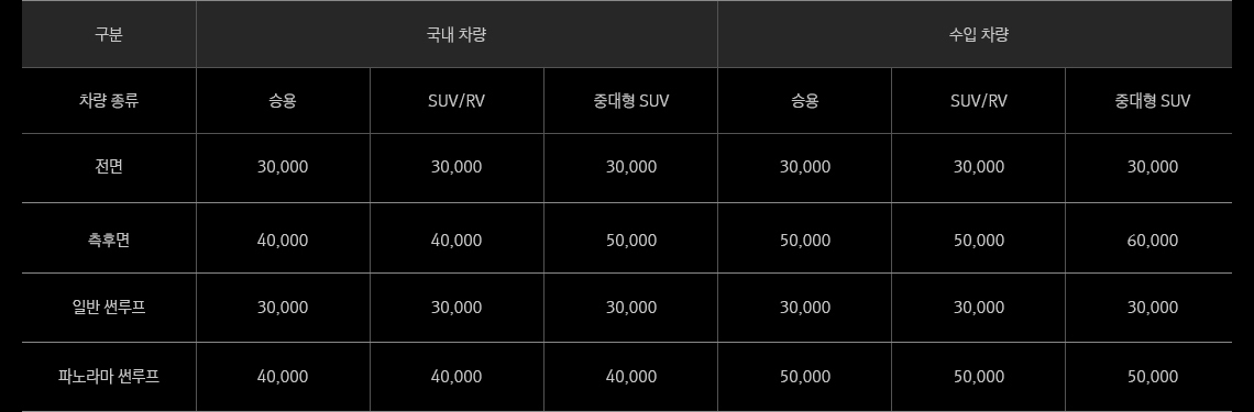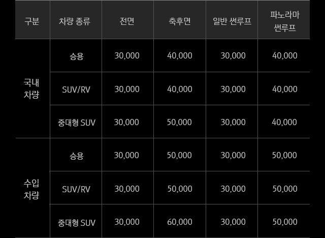 * 일부차량은 시공난이도에 따라 추가금이 발생할 수 있습니다.